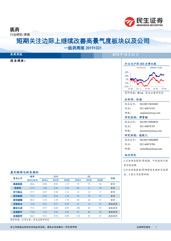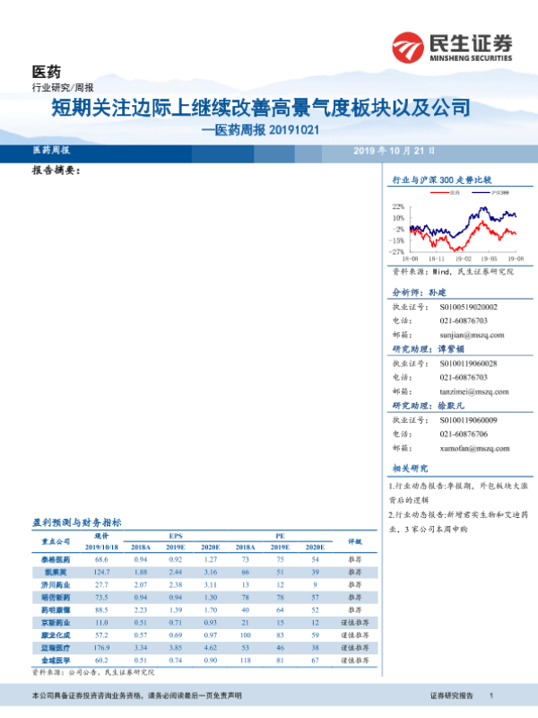 【民生证券】【20191021】短期关注边际上继续改善高景气度板块以及公司-11页