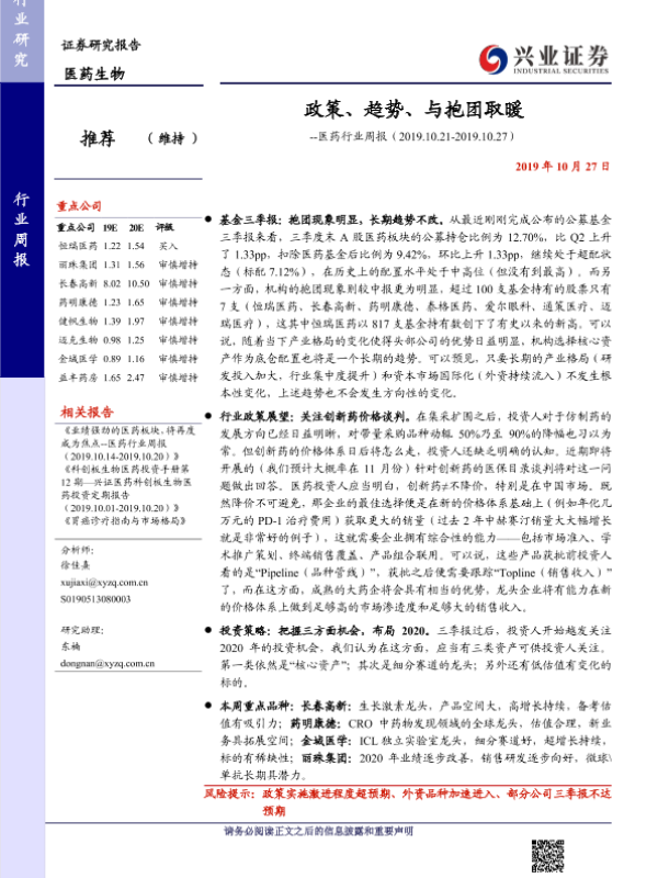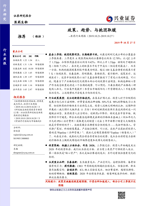 【兴业证券】【20191027】政策、趋势、与抱团取暖-13页