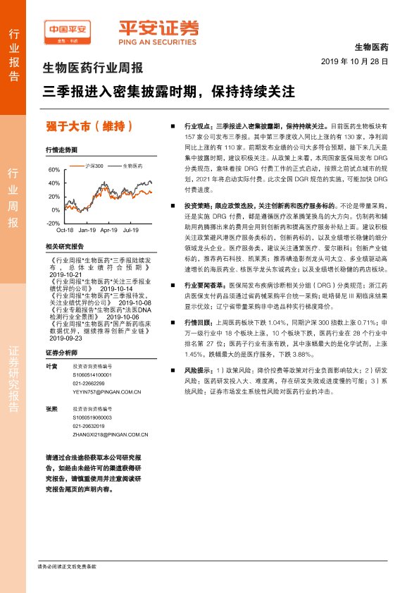 【平安证券】【20191028】生物医药行业周报:三季报进入密集披露时期,保持持续关注-5页