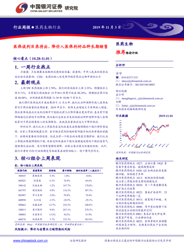 【银河证券】【20191103】医保谈判目录将出,降价入医保利好品种长期销售-36页