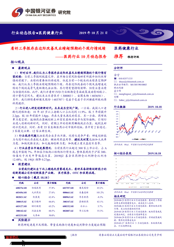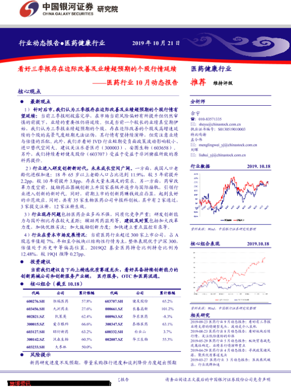 【银河证券】【20191021】医药行业10月动态报告:看好三季报存在边际改善及业绩超预期的个股行情延续-55页