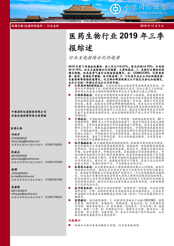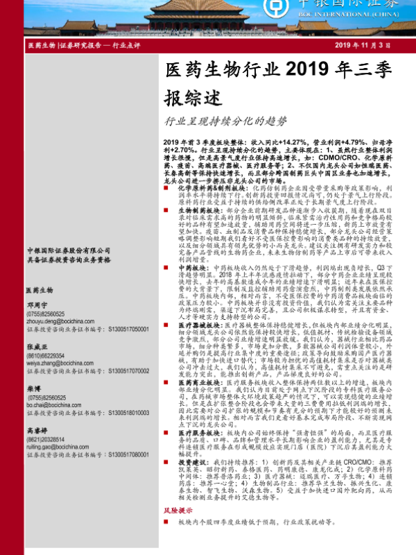 【中银证券】【20191103】医药生物行业2019年三季报综述-13页