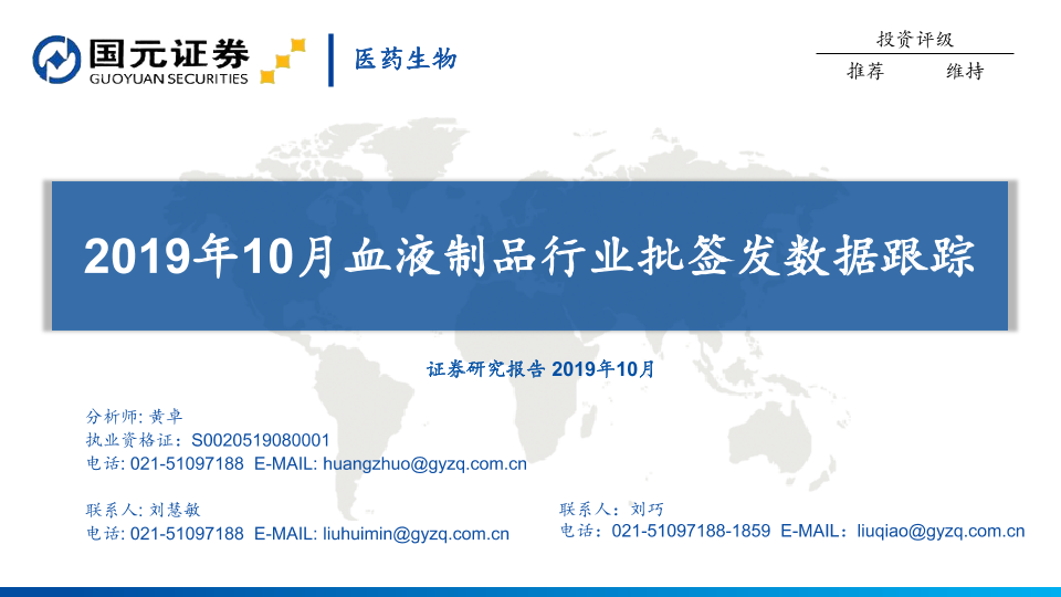 【国元证券】【20191106】2019年10月血液制品行业批签发数据跟踪-8页