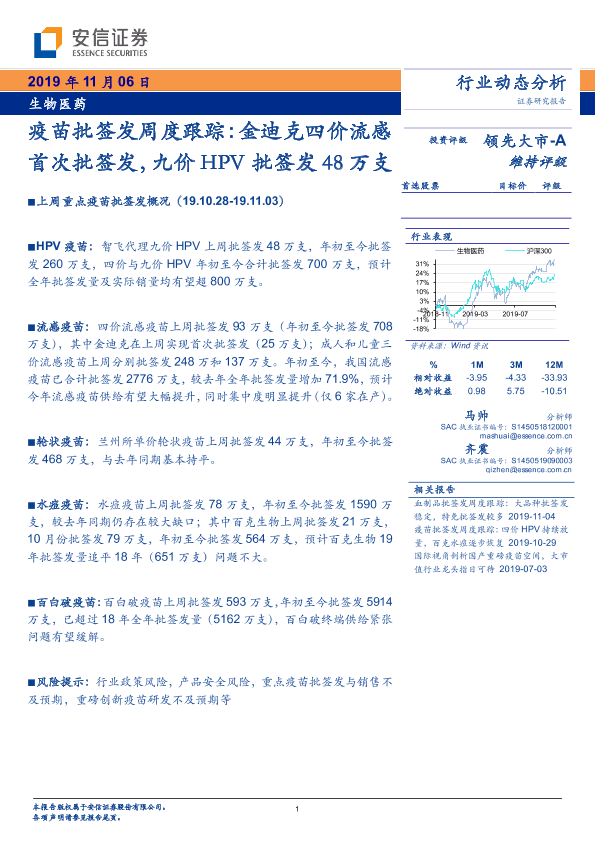 【安信证券】【20191106】疫苗批签发周度跟踪:金迪克四价流感首次批签发,九价HPV批签发48万支-14页
