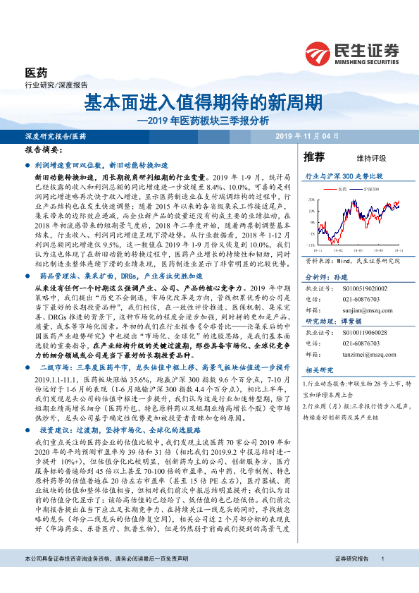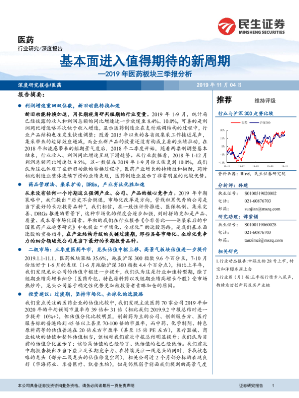 【民生证券】【20191104】2019年医药板块三季报分析:基本面进入值得期待的新周期-27页