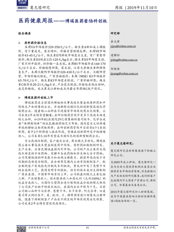 【莫尼塔研究】【20191110】医药健康周报:博瑞医药登陆科创板-12页