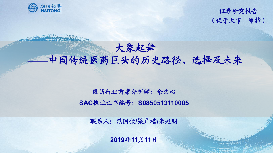 【海通证券】【20191111】大象起舞——中国传统医药巨头的历史路径、选择及未来-39页