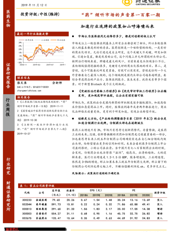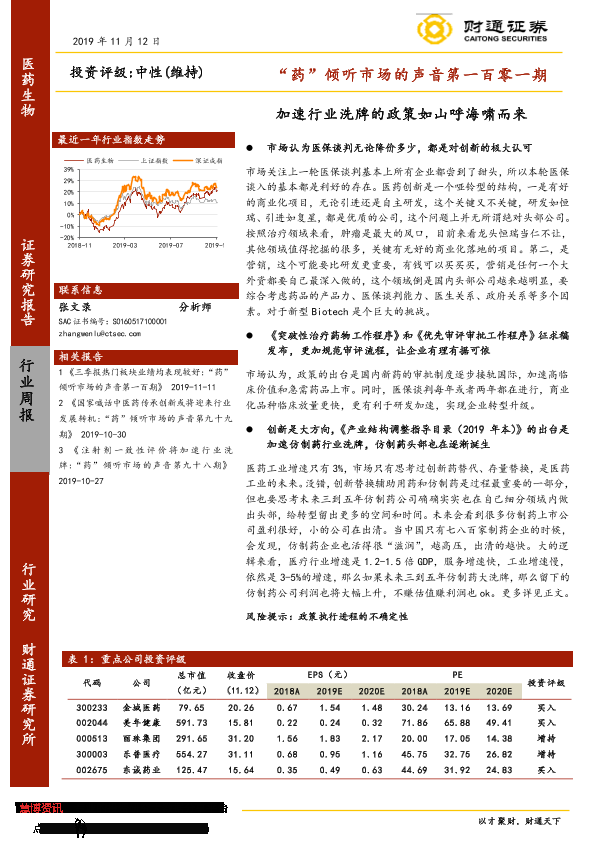 【财通证券】【20191112】‘药’倾听市场的声音第一百零一期:加速行业洗牌的政策如山呼海啸而来-8页