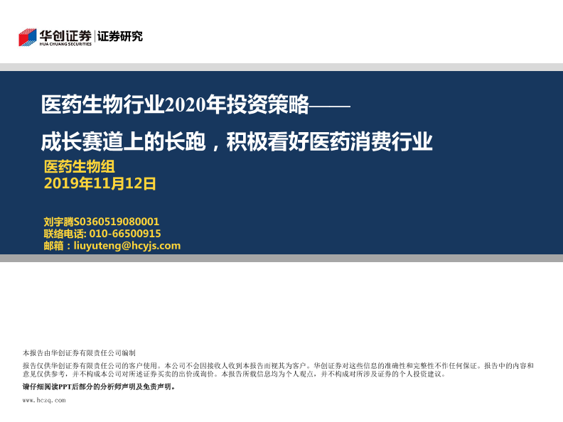 【华创证券】【20191112】医药生物行业2020年投资策略:成长赛道上的长跑,积极看好医药消费行业-52页