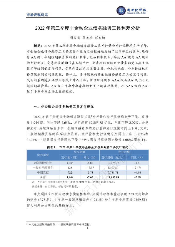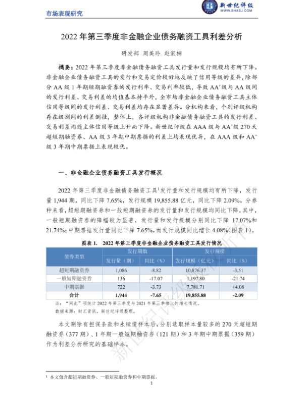 【新世纪评级】【20220930】2022年第三季度非金融企业债务融资工具利差分析-7页
