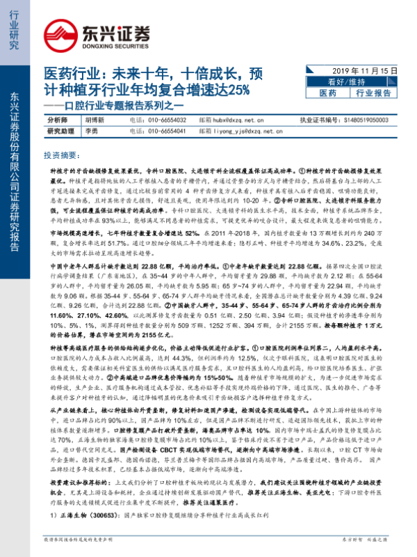【东兴证券】【20191115】医药行业:未来十年,十倍成长,预计种植牙行业年均复合增速达25%-27页