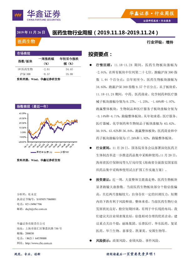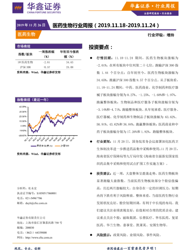 【华鑫证券】【20191126】医药生物行业周报-10页