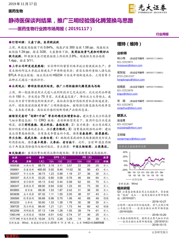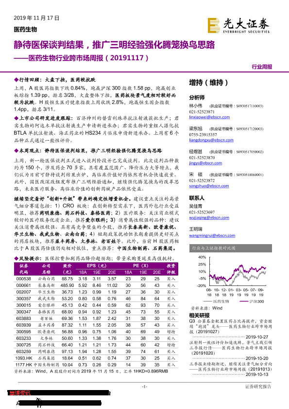 【光大证券】【20191117】医药生物行业跨市场周报:静待医保谈判结果,推广三明经验强化腾笼换鸟思路-29页
