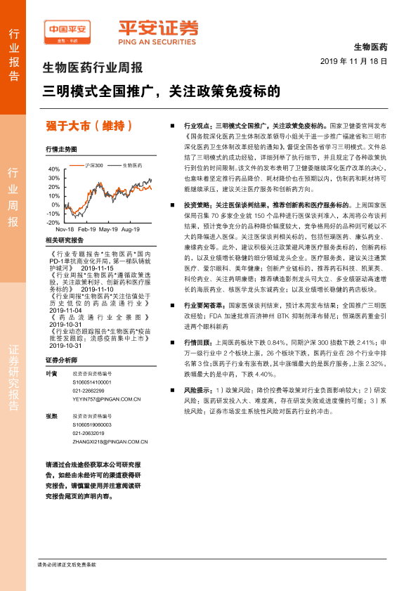 【平安证券】【20191118】生物医药行业周报:三明模式全国推广,关注政策免疫标的-5页