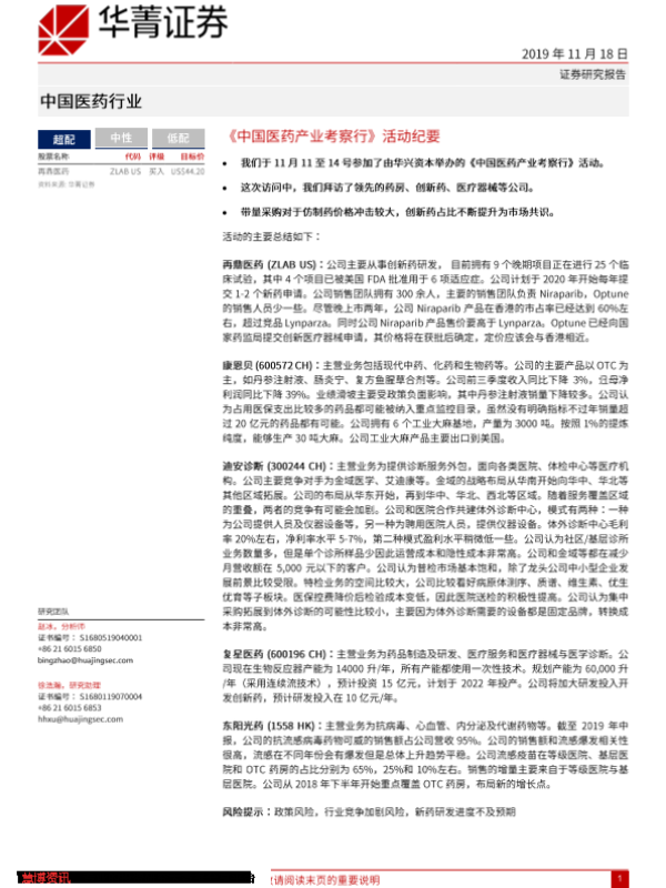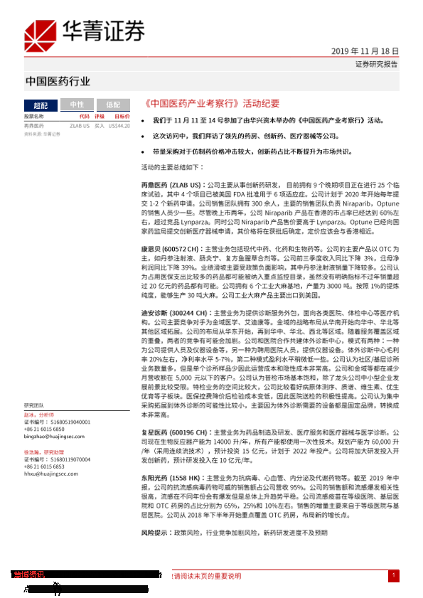 【华兴证券(境内)】【20191118】中国医药产业考察行活动纪要-4页