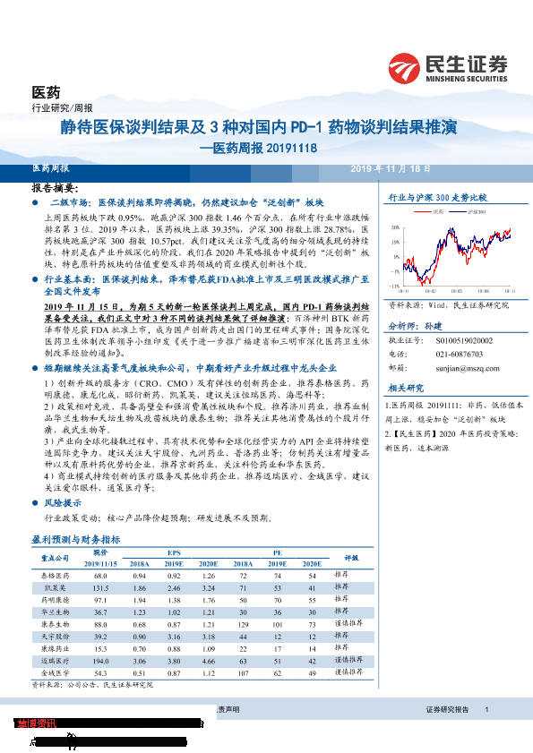 【民生证券】【20191118】静待医保谈判结果及3种对国内PD-1药物谈判结果推演-20页