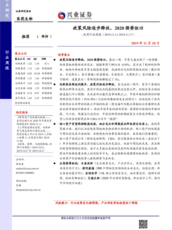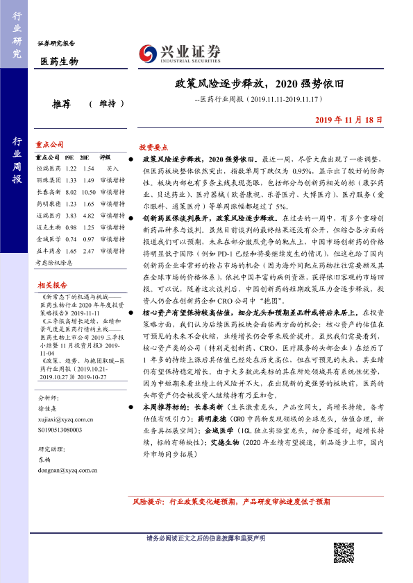 【兴业证券】【20191118】政策风险逐步释放,2020强势依旧-12页