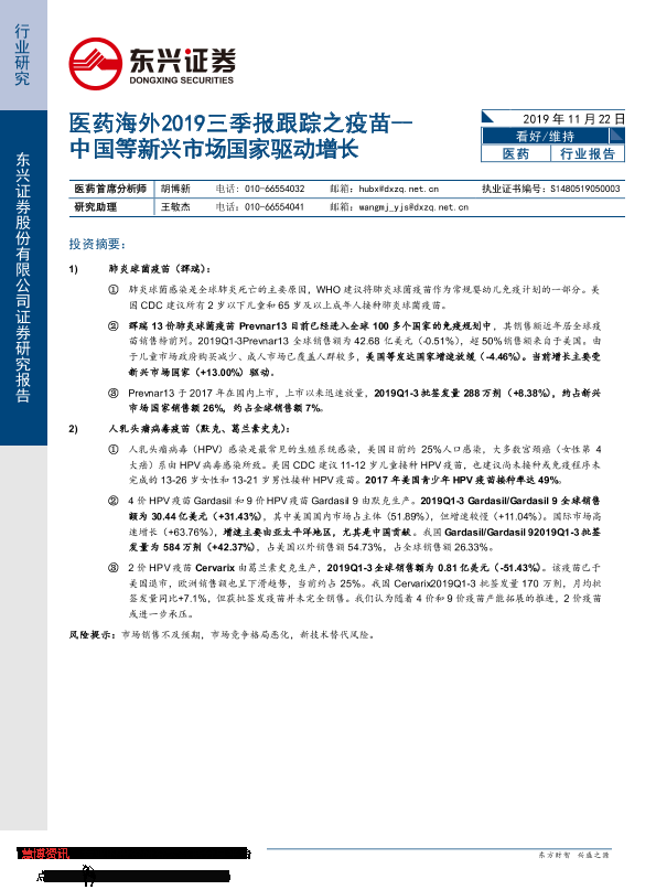 【东兴证券】【20191122】医药海外2019三季报跟踪之疫苗--中国等新兴市场国家驱动增长-19页