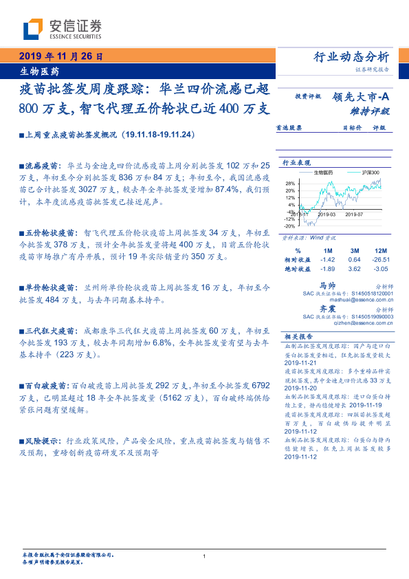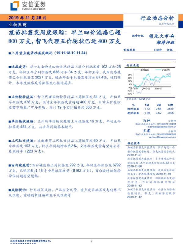 【安信证券】【20191126】疫苗批签发周度跟踪:华兰四价流感已超800万支,智飞代理五价轮状已近400万支-13页