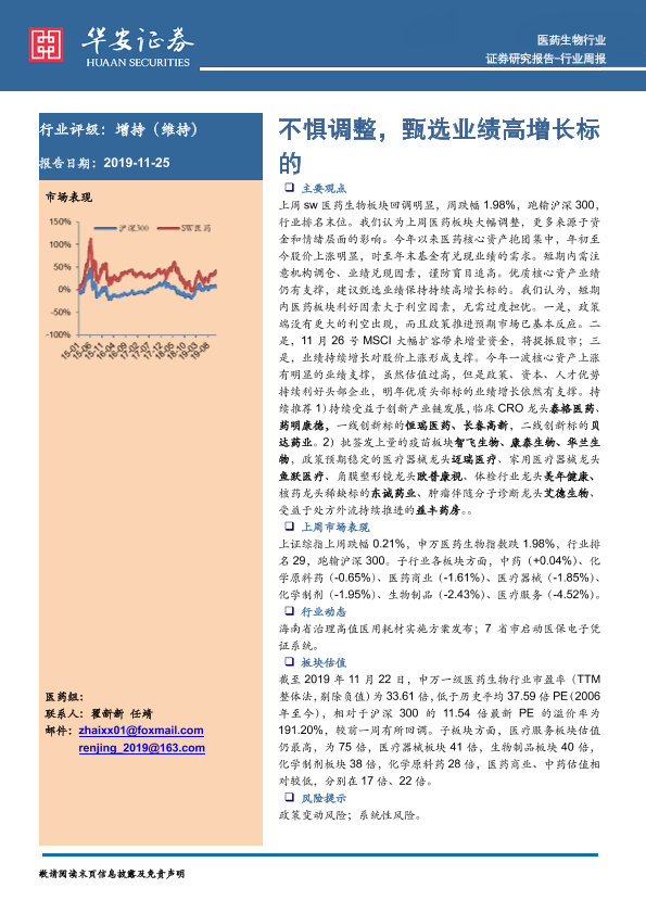 【华安证券】【20191125】医药生物行业周报:不惧调整,甄选业绩高增长标的-9页