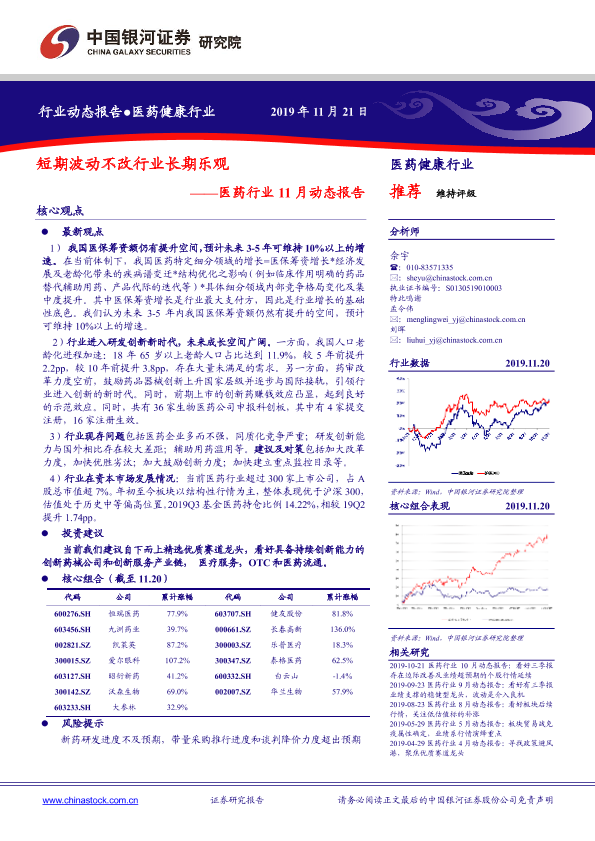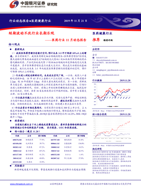 【银河证券】【20191121】医药行业11月动态报告:短期波动不改行业长期乐观-70页