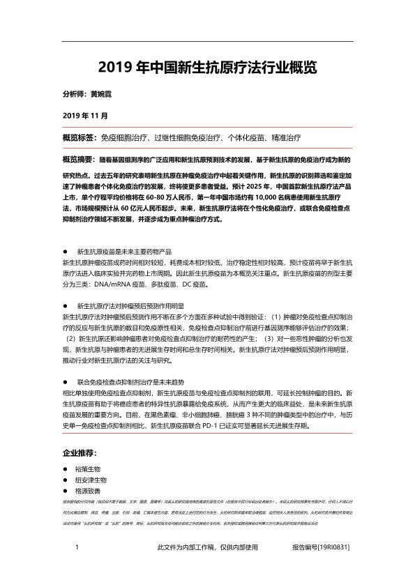 【头豹研究院】【201911】2019年中国新生抗原疗法行业概览-31页