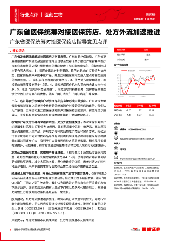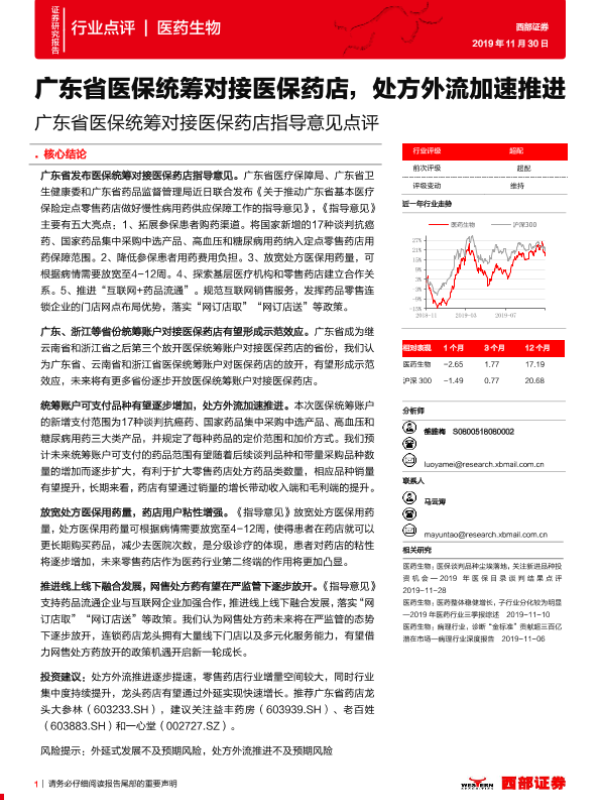 【西部证券】【20191130】广东省医保统筹对接医保药店指导意见点评:广东省医保统筹对接医保药店,处方外流加速推进-5页