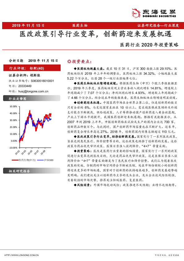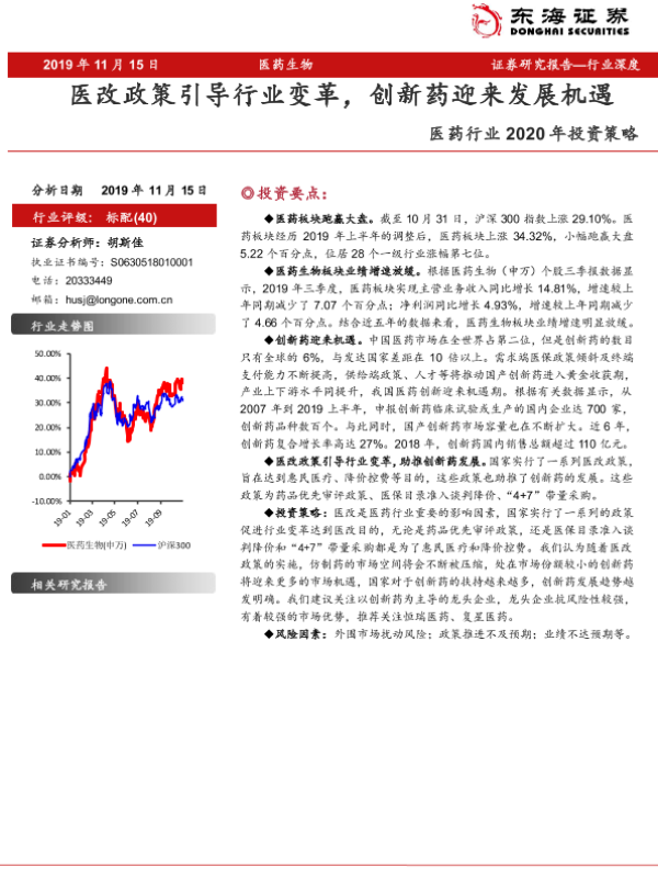【东海证券】【20191115】医药行业2020年投资策略:医改政策引导行业变革,创新药迎来发展机遇-21页