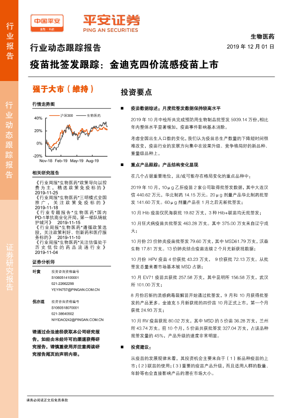 【平安证券】【20191201】疫苗批签发跟踪:金迪克四价流感疫苗上市-10页