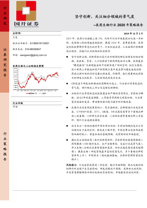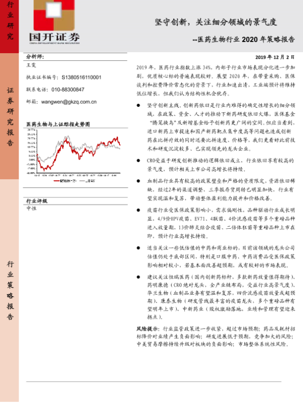 【国开证券】【20191202】医药生物行业2020年策略报告:坚守创新,关注细分领域的景气度-19页