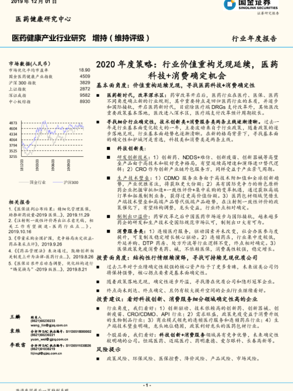 【国金证券】【20191201】2020年度策略:行业价值重构兑现延续,医药科技+消费确定机会-75页