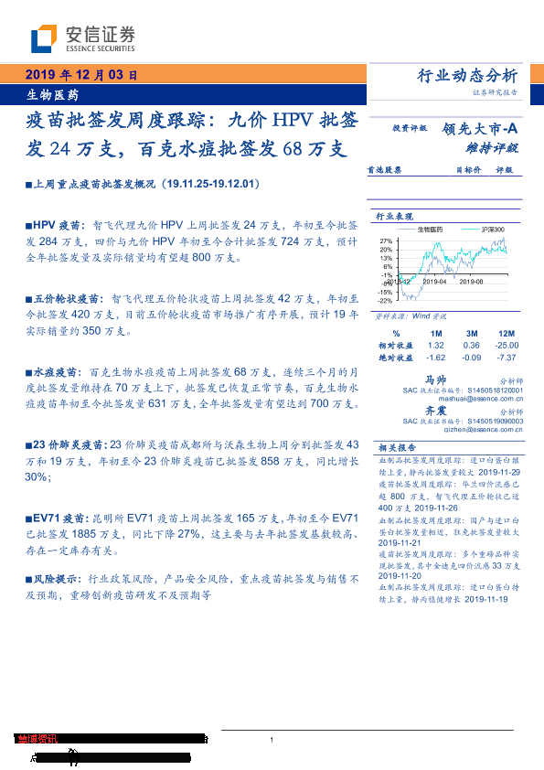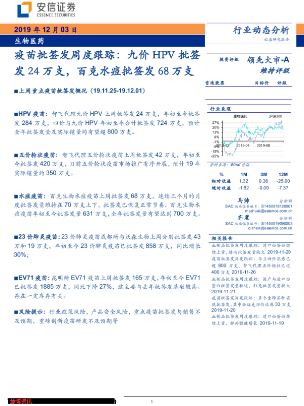 【安信证券】【20191203】疫苗批签发周度跟踪:九价HPV批签发24万支,百克水痘批签发68万支-13页