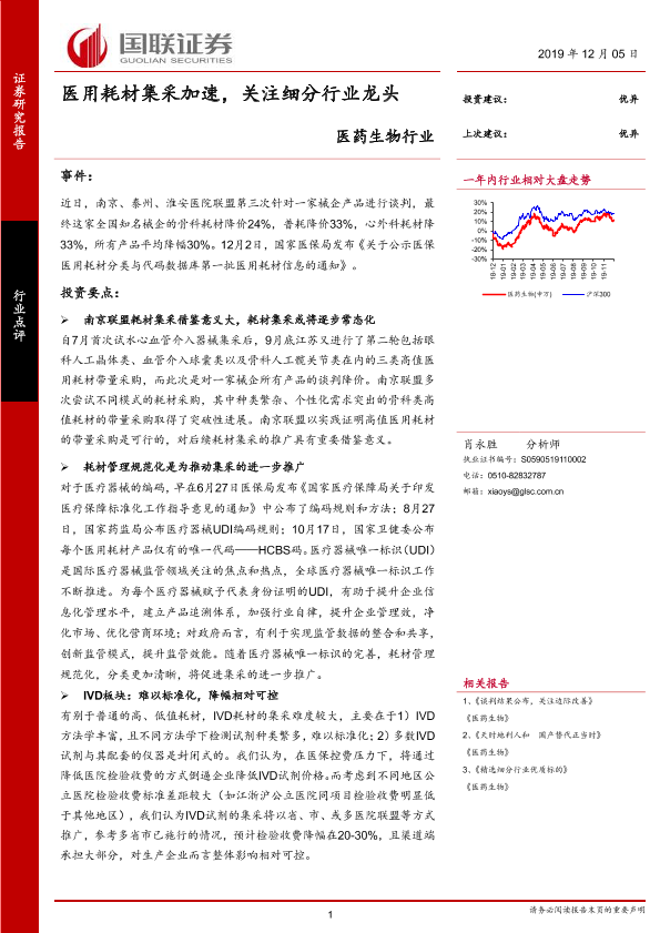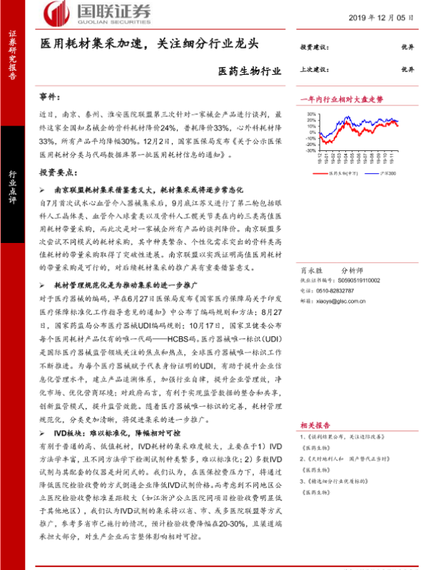 【国联证券】【20191205】医药生物行业:医用耗材集采加速,关注细分行业龙头-4页