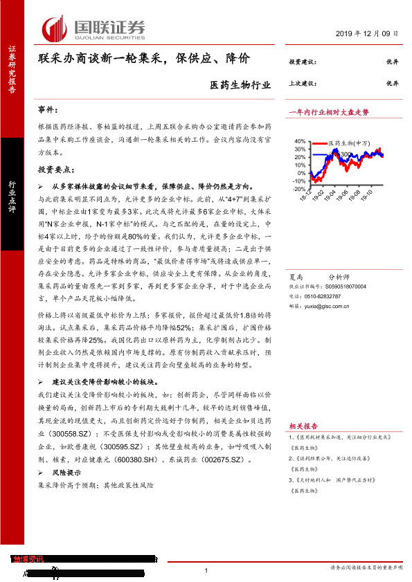 【国联证券】【20191209】联采办商谈新一轮集采,保供应、降价-3页