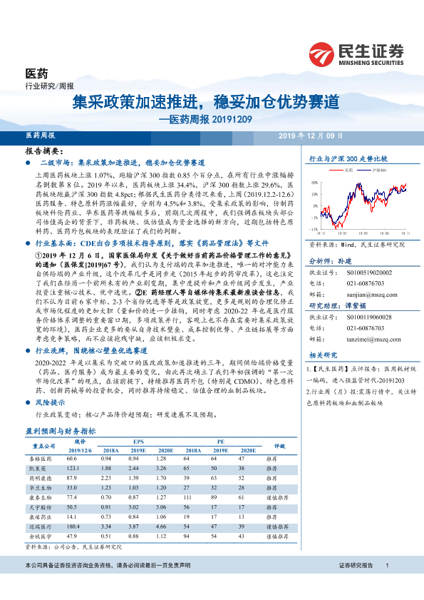 【民生证券】【20191209】医药周报:集采政策加速推进,稳妥加仓优势赛道-14页