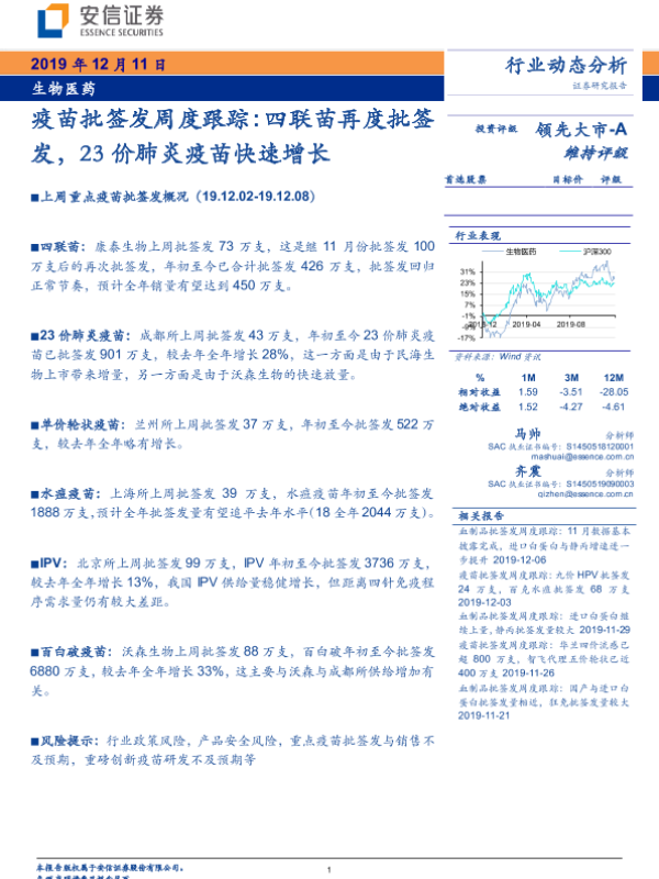 【安信证券】【20191211】疫苗批签发周度跟踪:四联苗再度批签发,23价肺炎疫苗快速增长-13页