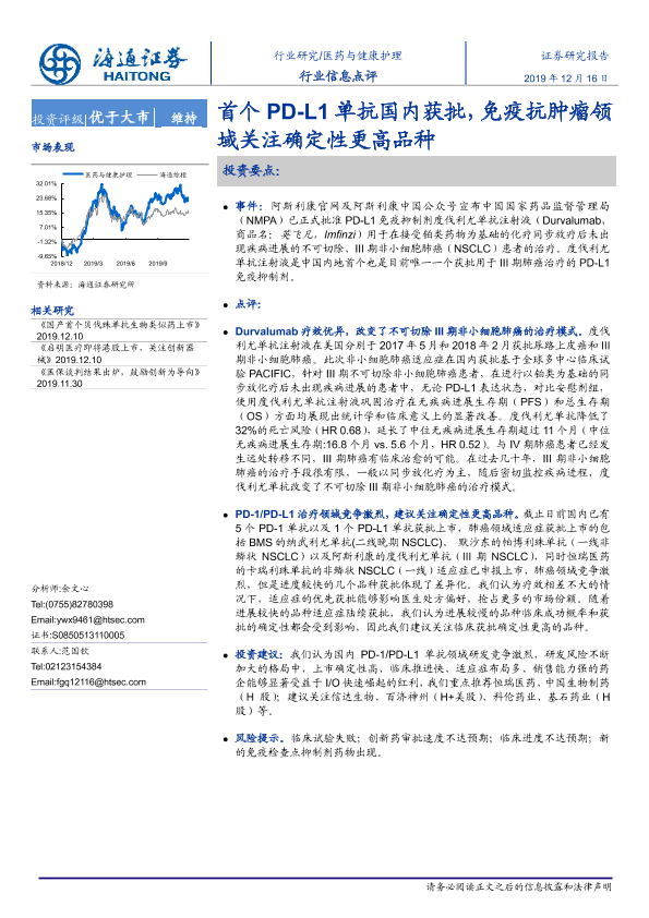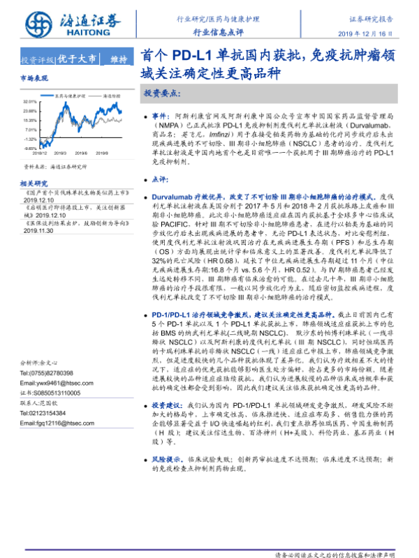 【海通证券】【20191216】首个PD-L1单抗国内获批,免疫抗肿瘤领域关注确定性更高品种-2页