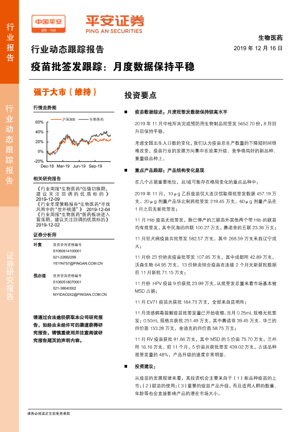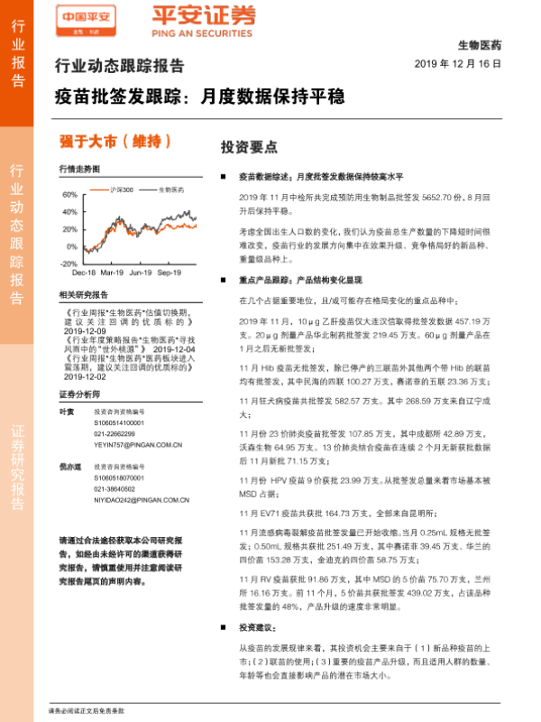 【平安证券】【20191216】疫苗批签发跟踪:月度数据保持平稳-10页