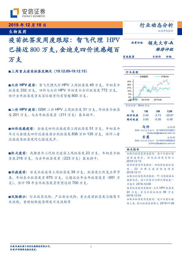 【安信证券】【20191218】疫苗批签发周度跟踪:智飞代理HPV已接近800万支,金迪克四价流感超百万支-13页