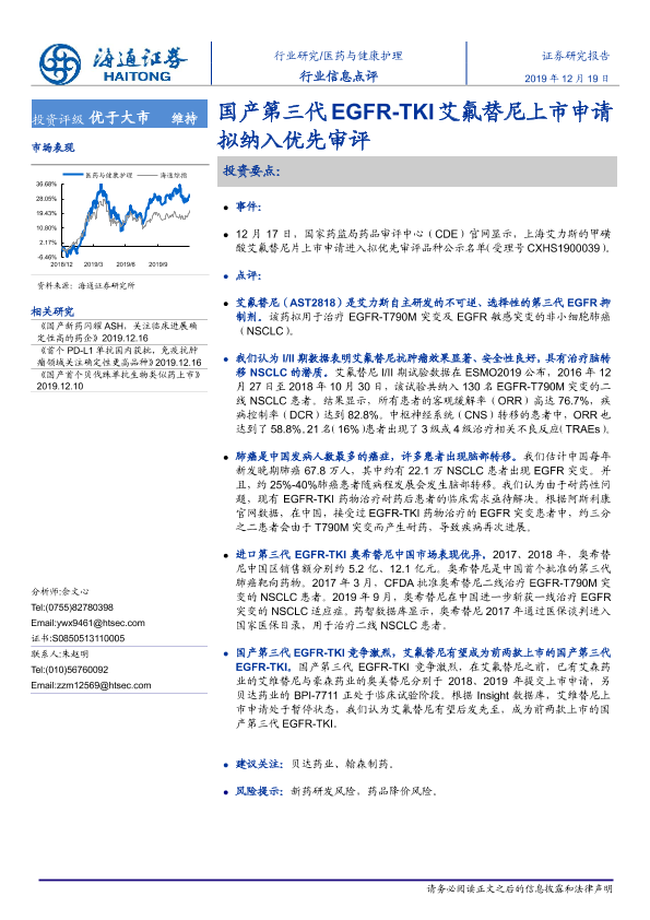 【海通证券】【20191219】国产第三代EGFR-TKI艾氟替尼上市申请拟纳入优先审评-2页