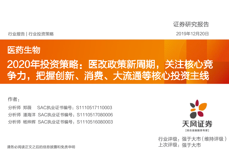 【天风证券】【20191220】2020年投资策略:医改政策新周期,关注核心竞争力,把握创新、消费、大流通等核心投资主线-111页