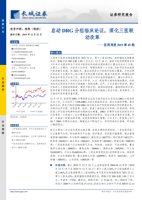 【长城证券】【20191222】启动DRG分组临床论证,深化三医联动改革-17页
