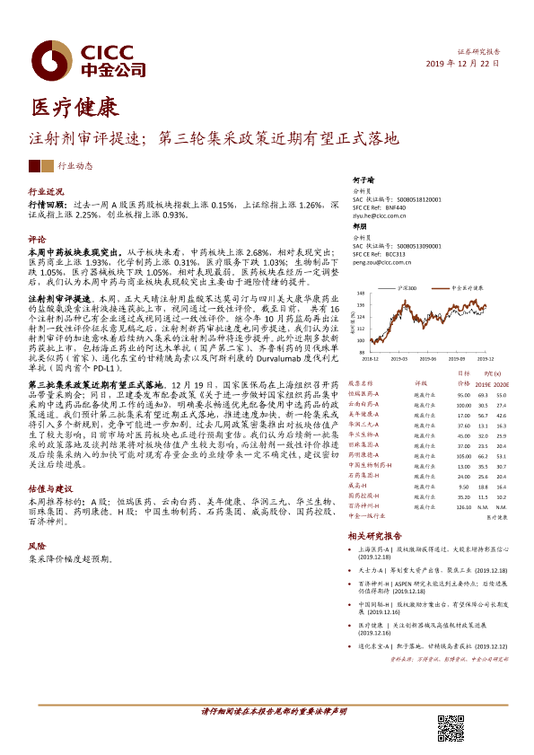 【中金公司】【20191222】注射剂审评提速;第三轮集采政策近期有望正式落地-12页