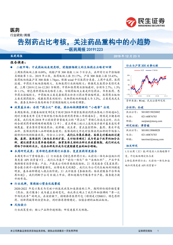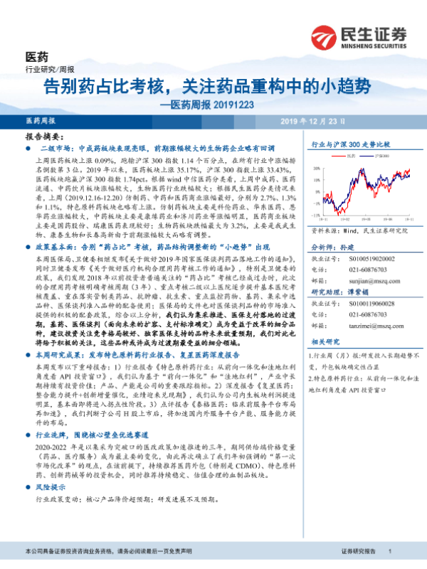 【民生证券】【20191223】医药周报:告别药占比考核,关注药品重构中的小趋势-17页