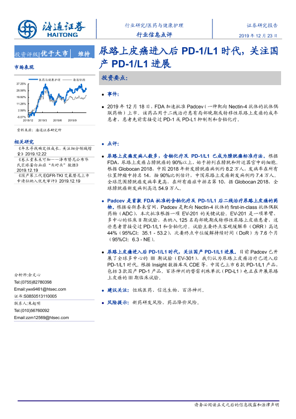【海通证券】【20191223】尿路上皮癌进入后PD-1 L1时代,关注国产PD-1 L1进展-2页