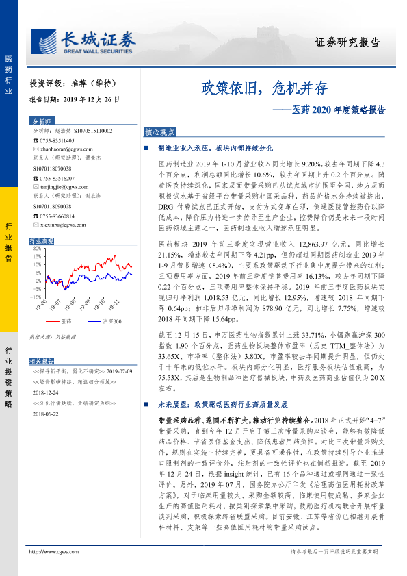 【长城证券】【20191226】医药2020年度策略报告:政策依旧,危机并存-25页