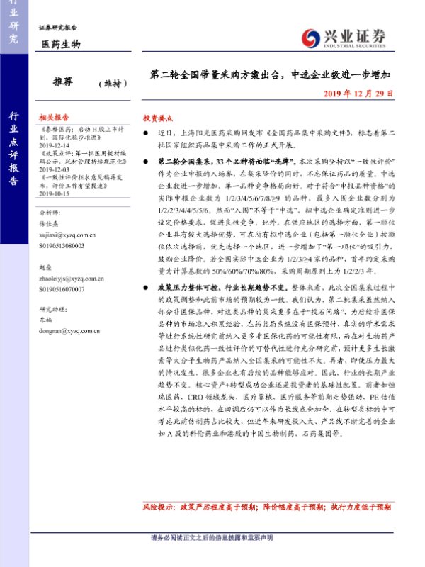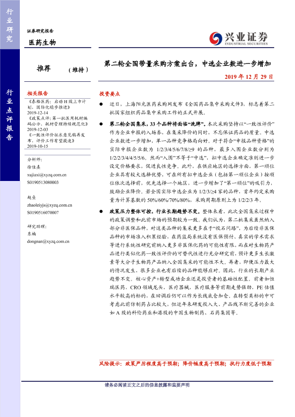 【兴业证券】【20191229】第二轮全国带量采购方案出台,中选企业数进一步增加-6页