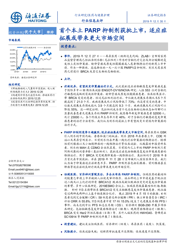 【海通证券】【20191230】首个本土PARP抑制剂获批上市,适应症拓展或带来更大市场空间-2页