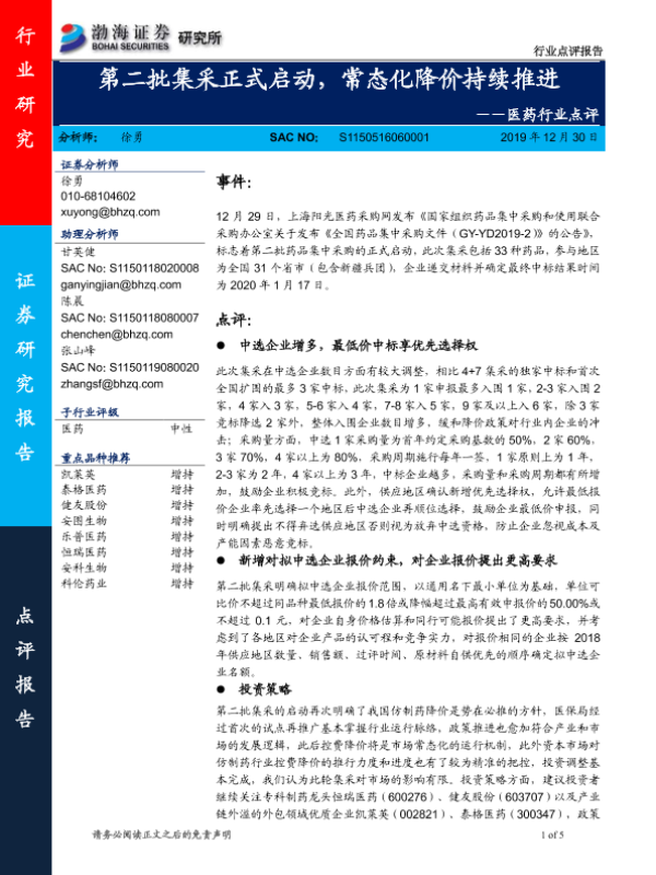 【渤海证券】【20191230】第二批集采正式启动,常态化降价持续推进-5页