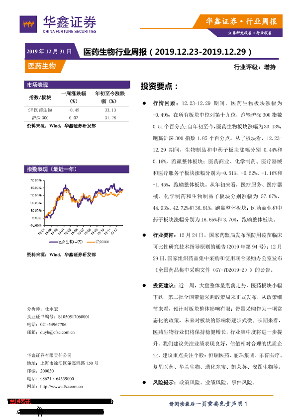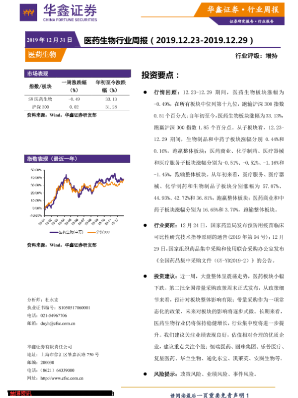 【华鑫证券】【20191231】医药生物行业周报-10页